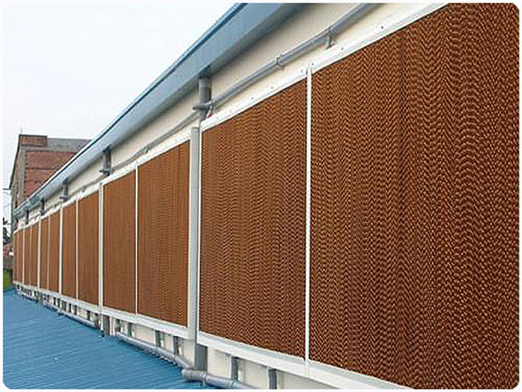 其工作原理基於水蒸發吸熱這一自然物理現象。當水在重力作用下,沿水簾波紋狀纖維表麵流下,形成薄薄水膜。室外幹熱空氣被風機抽吸穿過水簾時,水膜中的水吸收空氣熱量,進而蒸發為水蒸氣。如此一來,經過處理的涼爽濕潤空氣進入室內,可使室內溫度迅速降低 5-10℃ ,甚至更多。